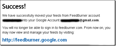 Jika anda sudah berhasil memindahkan account feedburner ke account google, maka account lama anda di feedburner tidak akan tersedia lagi.